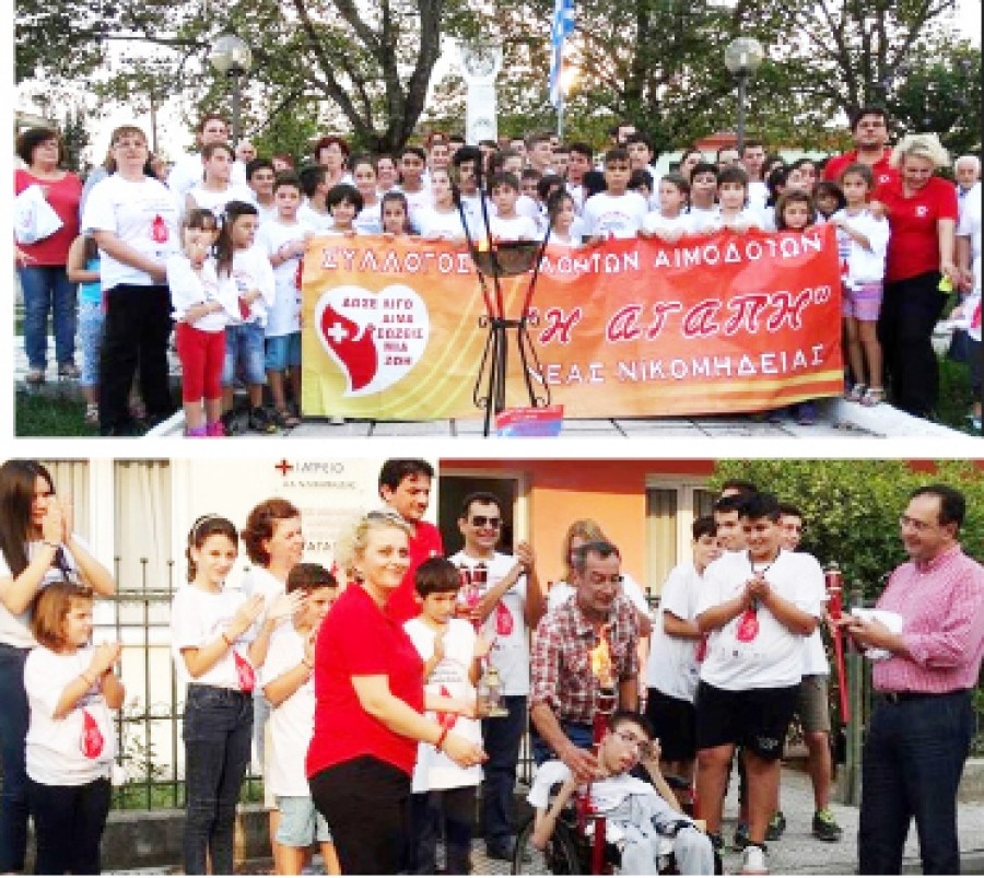 Τη «Φλόγα του Αιμοδότη» παρέλαβε ο βραβευμένος μαθητής για τις σχολικές του επιδόσεις Αμανατίδης Δημήτρης του Κων/νου και την άναψε ο Παπαδόπουλος Ανδρέας του Νίκου, παιδιά με κινητικά προβλήματα, δίνοντας το μήνυμα οτι στην αιμοδοσία χωράνε ΌΛΟΙ.