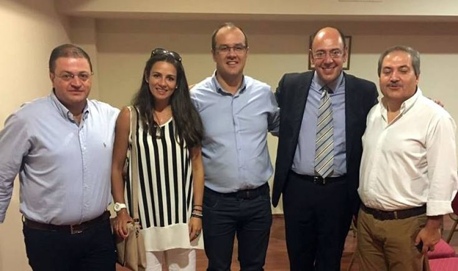 Μια Σταυρούλα και τέσσερις Σταύροι, μία μέρα μετά από τη γιορτή τους, σε ένα ενσταντανέ λίγο πριν τη νομαρχιακή συνέλευση της ΝΟΔΕ Ημαθίας το βράδυ της Πέμπτης στο Αιγές, παρουσία της Ντόρας Μπακογιάννη! Από αριστερά: Γεωργιάδης, Γιαννούτσου, Ζάχος, Βαλσαμίδης, Γιανναβαρτζής. Όλοι με ενασχόληση με την πολιτική και την τοπική αυτοδιοίκηση, που εκτός από Σταύροι… εκτέθηκαν και στη διαδικασία του σταυρού προτίμησης!