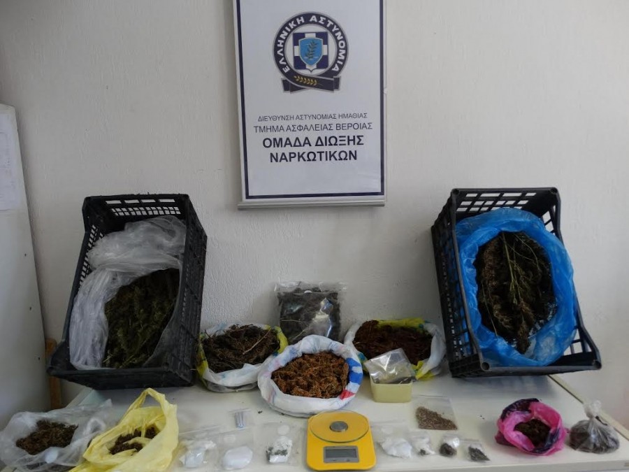 Τη σύλληψη ενός 68χρονου και μιας 69χρονης που δραστηριοποιούνταν στη διακίνηση και την καλλιέργεια κάνναβης στην Ημαθία είχαν ως αποτέλεσμα οι συντονισμένες ενέργειες των αστυνομικών της Ομάδας Δίωξης Ναρκωτικών του Τμήματος Ασφάλειας Βέροιας. Το πρωί της Παρασκευής εντοπίσθηκαν οι προαναφερόμενοι σε αγροτική περιοχή της Ημαθίας και σε αιφνιδιαστικό έλεγχο που ακολούθησε, διαπιστώθηκε να καλλιεργούν σε αγρόκτημα συγγενικού τους προσώπου συνολικά 16 δενδρύλλια κάνναβης ύψους έως 3 μέτρων, τα οποία εκριζώθηκαν και κατασχέθηκαν. Σε έρευνα που πραγματοποιήθηκε στο σπίτι τους με τη συνδρομή αστυνομικού σκυλού, εντοπίστηκαν σε διάφορους χώρους επιμελώς κρυμμένα και κατασχέθηκαν: