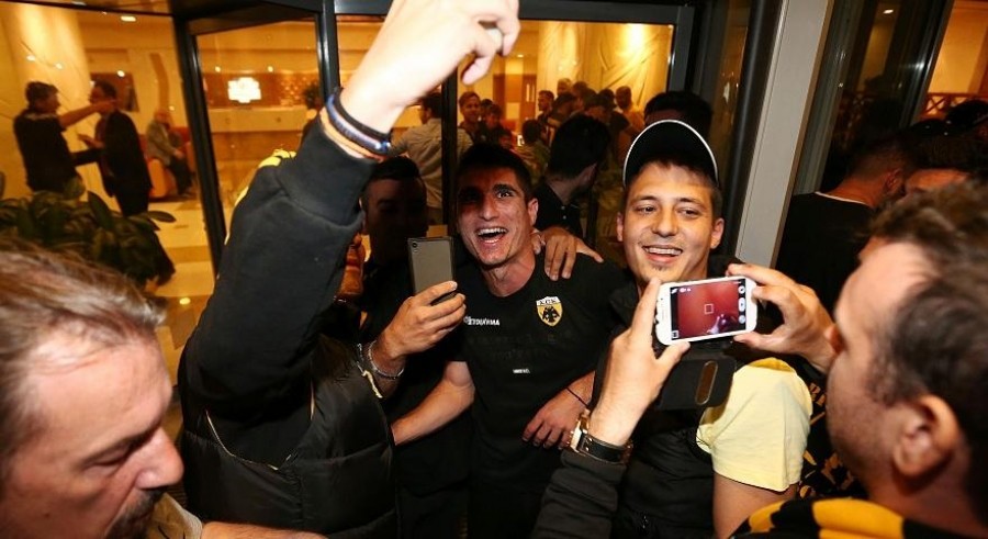 Αποθεωτική υποδοχή επιφύλαξαν στην αποστολή της ΑΕΚ περίπου 50 «κιτρινόμαυροι» οπαδοί, στο ξενοδοχείο Αιγές. Βροντερό «παρών» αναμένεται να δώσουν και σήμερα οι οπαδοί της ΑΕΚ -από τη Βόρεια Ελλάδα κυρίως- στο δημοτικό στάδιο, κόντρα στην αποφασισμένη για νίκη ‘Βασίλισσα του Βορρά’. Στη Βέροια αναμένονται σήμερα για το ματς 1.500 οπαδοί της Ένωσης, 50 εκ των οποίων έχουν δείξει ήδη τις… προθέσεις τους από χθες!