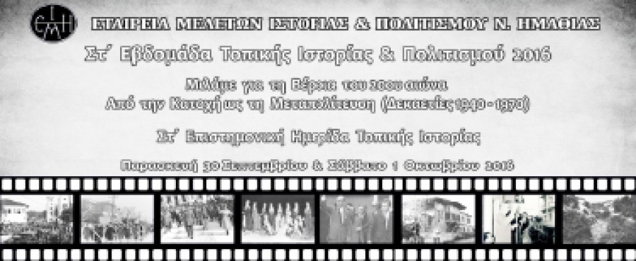 Την Παρασκευή 30 Σεπτεμβρίου και το Σάββατο 1 Οκτωβρίου πραγματοποιείται η Στ΄ Επιστημονική Ημερίδα Τοπικής Ιστορίας «Μιλάμε για τη Βέροια του 20ου αιώνα» (Δεκαετίες 1940-1970), η οποία εντάσσεται στο πλαίσιο της Στ΄ Εβδομάδας Τοπικής Ιστορίας και Πολιτισμού της Ε.Μ.Ι.Π.Η.