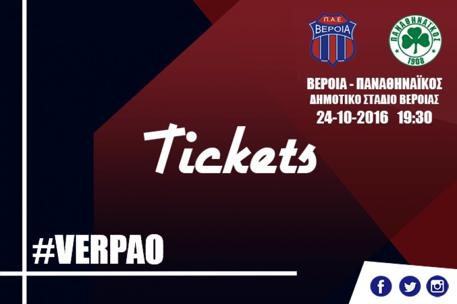 Ξεκίνησε η προπώληση εισιτηρίων για τον αγώνα της Βέροιας με τον Παναθηναϊκό (Δευτέρα 24/10/2016, ώρα 19:30, Δημοτικό Στάδιο Βέροιας) στις εξής τιμές: