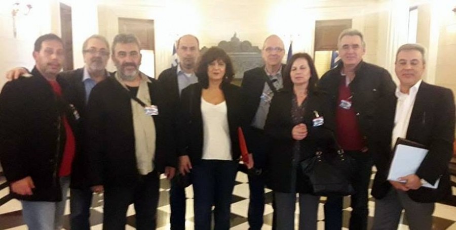 (Στη φωτογραφία η αντιπροσωπεία των εργαζομένων με τη βουλευτή Φρόσω Καρασαρλίδου στο Μέγαρο Μαξίμου).