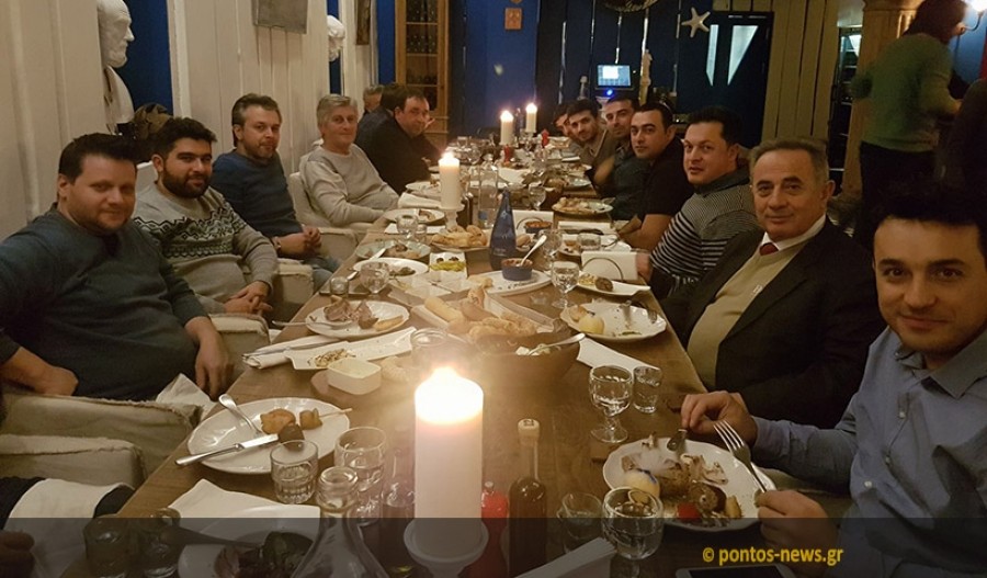 Έλληνες από διάφορες περιοχές της Ρωσίας και από την Ελλάδα βρέθηκαν το βράδυ της Κυριακής στο ελληνικό εστιατόριο της Μόσχας «Μολών Λαβέ» και γιόρτασαν ποντιακά το αντάμωμά τους ενόψει της μεγάλης εκδήλωσης που διοργάνωσε την επόμενη μέρα στην Κεντρική Αίθουσα του Κρεμλίνου η Ομοσπονδία Ελληνικών Κοινοτήτων της Ρωσίας. Μεταξύ των συνδαιτυμόνων ο καθηγητής Κωνσταντίνος Φωτιάδης, οι αδελφοί Τσαχουρίδη και ο λυράρης από το Βίτιαζεβο Λάζαρος Παπαδόπουλος, που έδωσαν και τον ποντιακό ρυθμό στη βραδιά. Στη γιορταστική σύναξη αποτυπώθηκε η νοσταλγία και η αγάπη στον Πόντο, κάτι που έζησε και ένιωσε το pontos-news.gr στην αποστολή του στη Μόσχα.