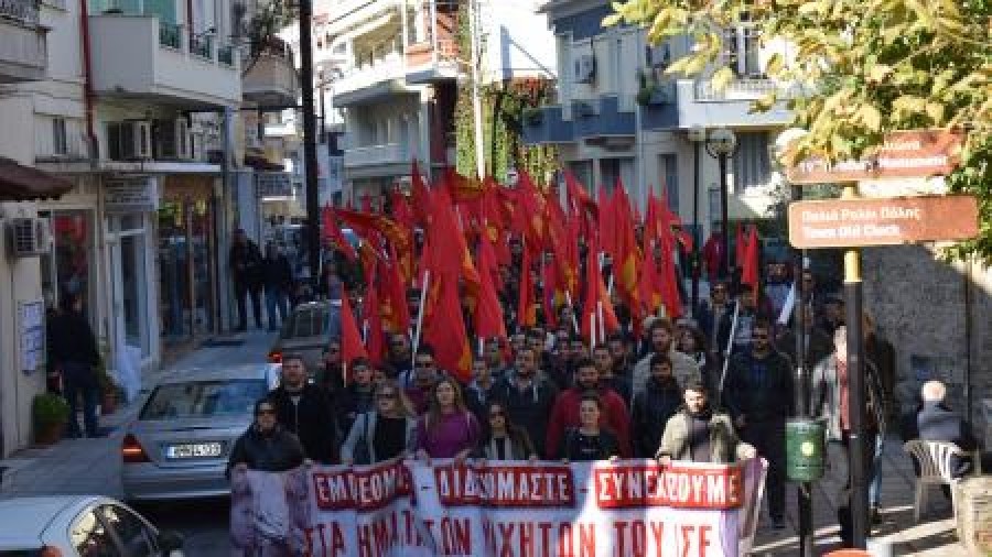 Κόκκινο ήταν το διήμερο που πέρασε στη Νάουσα, με εκατοντάδες νέες και νέους, μέλη και φίλους της ΚΝΕ, να συμμετέχουν στις εκδηλώσεις της Οργάνωσης Περιοχής Κεντρικής Μακεδονίας, με αφορμή τα 70 χρόνια από την ίδρυση του Δημοκρατικού Στρατού. Εκτός από τις εκδηλώσεις του διημέρου που περιγράφτηκαν στο σχετικό ρεπορτάζ μας, το πρόγραμμα περιλάμβανε επίσης αθλητικές δραστηριότητες στον χώρο της πρώην μαθητικής εστίας, περίπατο και ανάβαση στο ύψωμα του Αη Λιά (απ΄ όπου φαίνεται όλο το πεδίο των μαχών). Το ιστορικό της μάχης παρουσίασε εκεί ο Γιώργος Ζοπουνίδης, μέλος της Τοπικής Επιτροπής Ημαθίας του ΚΚΕ. Στη συνέχεια οι συγκεντρωμένοι με πορεία κατευθύνθηκαν στα νεκροταφεία όπου υπάρχει το μνημείο για τους νεκρούς μαχητές του ΔΣΕ. Εκεί ο Θωμάς Ψαρογιάννης μαζί με δύο νεολαίους της ΚΝΕ, παρουσίασαν αποσπάσματα από τα Δελτία Ειδήσεων του ραδιοσταθμού “Ελεύθερη Ελλάδα”, οργάνου της Προσωρινής Δημοκρατικής Κυβέρνησης, που αναφέρονταν στη μάχη της Νάουσας.
