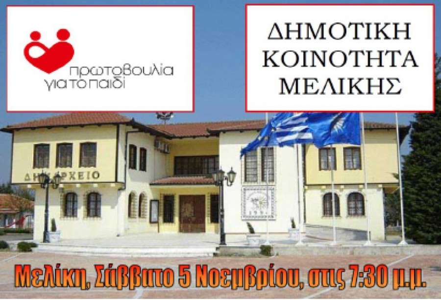 Η Δημοτική Κοινότητα Μελίκης και η Πρωτοβουλία για το Παιδί διοργανώνουν ενημερωτική εκδήλωση με θέμα: « Η Πρωτοβουλία για το Παιδί συστήνεται και σας μιλά για την  παιδική προστασία».