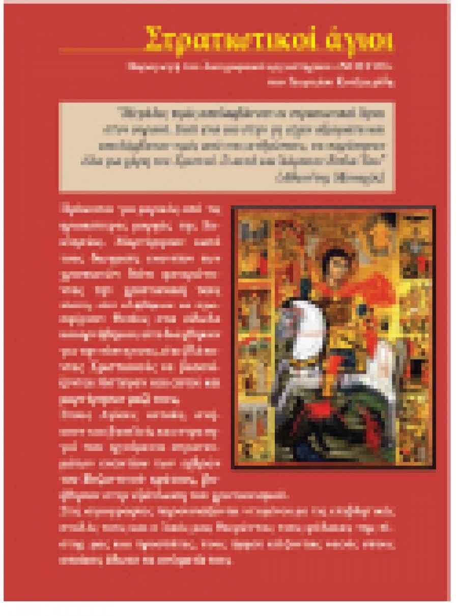 Η έκθεση περιλαμβάνει σεβαστό αριθμό εικόνων Αγίων που υπήρξαν Αυτοκράτορες, Αρχιστράτηγοι, Αξιωματικοί, και απλοί Στρατιώτες που μαρτύρησαν, υπερασπίστηκαν και δόξασαν τη Χριστιανική Πίστη.