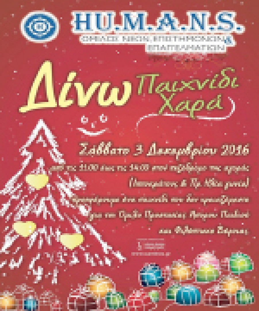 Ο Όμιλος Νέων, Επαγγελματιών και Επιστημόνων Βεροιας καλεί όλο τον κόσμο το Σάββατο 3 Δεκεμβρίου 2016 από τις 11.00 π.μ. έως τις 14.00 με ενα παιχνίδι στο χερι να δώσουμε χαρά στα παιδια που το εχουν ανάγκη. Χρησιμοποιημένο αλλα σε καλη κατάσταση θα διατεθεί για τις ανάγκες του Ομίλου Προστασίας Άπορου Παιδιού και της Φιλόπτωχου Αδελφότητας Κυριων Βέροιας εν όψει εορτών. Η εκδήλωση θα γίνει στον πεζόδρομο Ιπποκράτους και Πρ. Ηλία της Βέροιας.