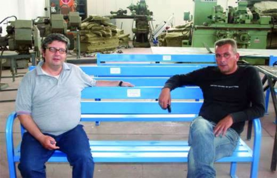 Εξαιρετικά εργαστήρια διαθέτει το ΕΠΑΛ Αλεξάνδρειας, στα οποία οι μαθητές, υπό την καθοδήγηση των καθηγητών τους, επιδίδονται σε διάφορες κατασκευές, που θα μπορούσαν να αξιοποιηθούν από τον Δήμο, έστω και σε μικρή ποσότητα. Στη φωτογραφία (από τον ΄Πολίτη΄) βλέπουμε τον διευθυντή των εργαστηρίων κ. Νικολόπουλο με τον πρόεδρο της Β΄βάθμιας Σχολικής Επιτροπής του δήμου κ. Συρόπουλο, να κάθονται σε κάποια παγκάκια, έργο των μαθητών του Εργαστηριακού Κέντρου του ΕΠΑΛ Αλεξάνδρειας.