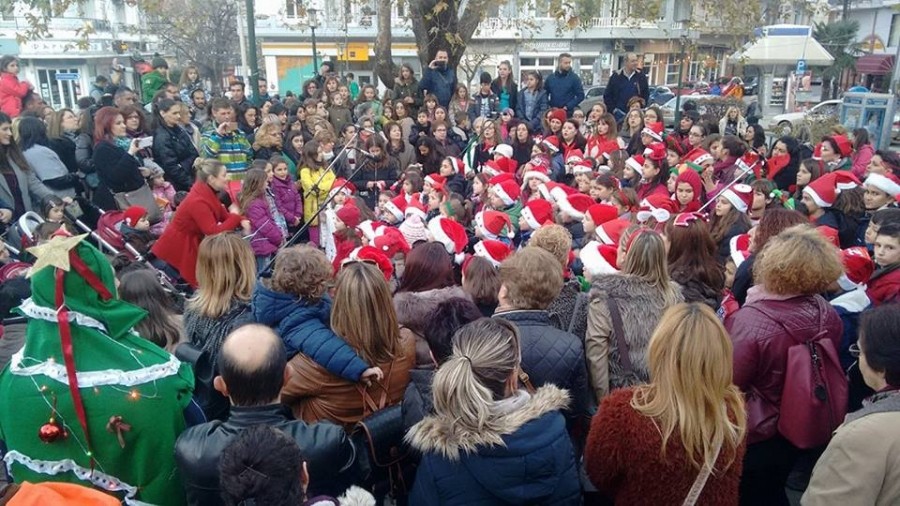 Κοντά τους η Φιλαρμονική, η ομάδα κρουστών Αριστοτέλης, η χορωδία του ωδείου Μητρόπολης, η χορωδία canto a tempo και πολύς κόσμος κάθε ηλικίας.