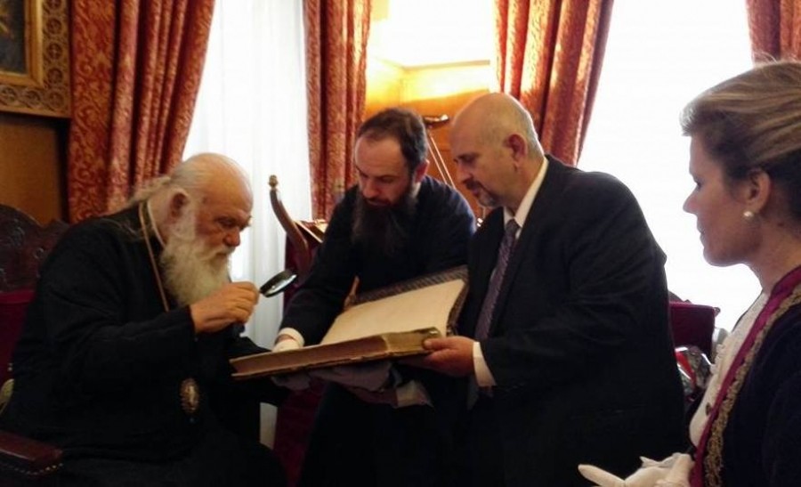 Επίσκεψη στον Αρχιεπίσκοπο Αθηνών και Πάσης Ελλάδος κ. Ιερώνυμο περιλάμβανε μεταξύ άλλων η χριστουγεννιάτικη μετάβαση της Ευξείνου Λέσχης Νάουσας στην Αθήνα. Ο Αρχιεπίσκοπος αποδέχθηκε πρόσκληση από τον πρόεδρο Φώτη Φανιάδη να επισκεφθεί τη Νάουσα και την Εύξεινο Λέσχη, για να θαυμάσει από κοντά την Εθνική Βιβλιοθήκη Αργυρούπολης.