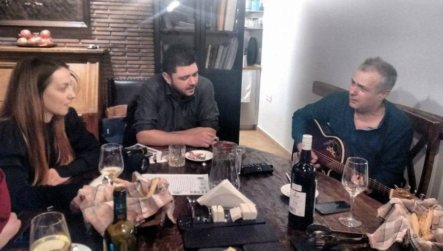Μετά το τέλος της ξενάγησης ο αντιδήμαρχος πρόσφερε στους δημοσιογράφους κρασί και ποτό, αλλά κυρίως πολλά τραγούδια με την κιθάρα του, με τη βραδιά να εξελίσσεται χαλαρά και μελωδικά.