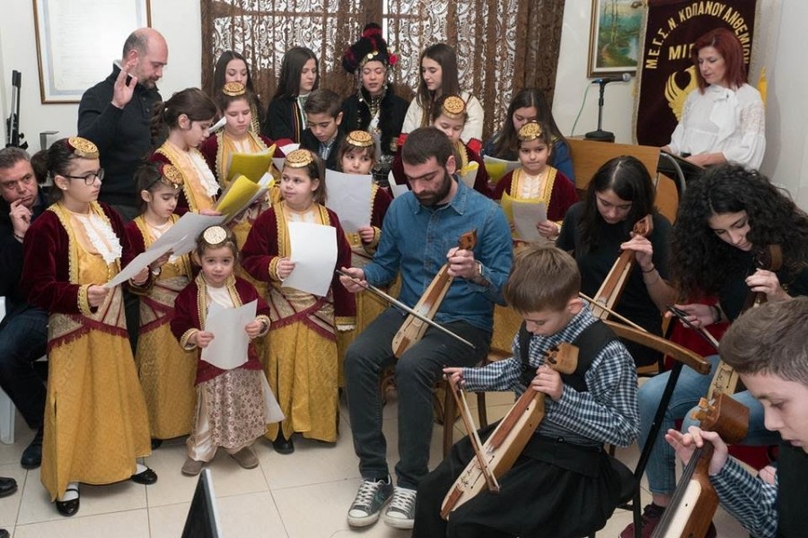 Η εκδήλωση ξεκίνησε με ένα καλωσόρισμα από τα παιδιά του συλλόγου που τραγούδησαν τα ποντιακά κάλαντα με τη συνοδεία των τμημάτων λύρας και νταουλιού.
