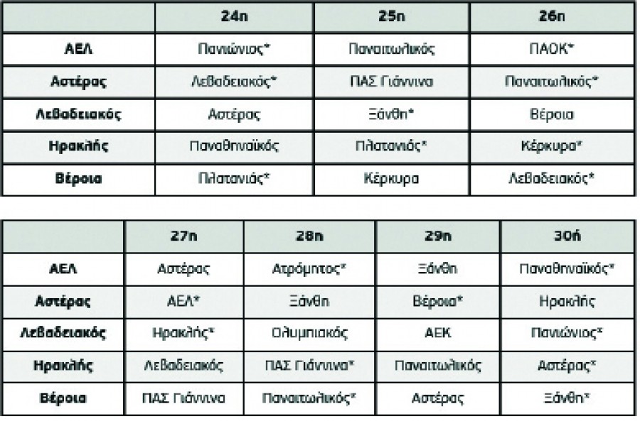 * Με αστερίσκο οι εκτός έδρας αγώνες