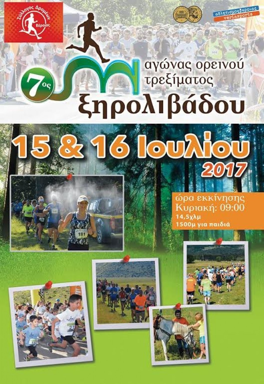 Ο Σύλλογος δρομέων Βέροιας σε συνεργασία με το Αθλητικό τμήμα του Κ.Α.Π.Α. Δήμου Βέροιας, αποφάσισαν την διεξαγωγή του αγώνα ‘’7ος αγώνας ορεινού τρεξίματος Ξηρολιβάδου’’, το διήμερο του Σάββατου 15  Ιούλη και την Κυριακή 16 Ιούλη 2017.