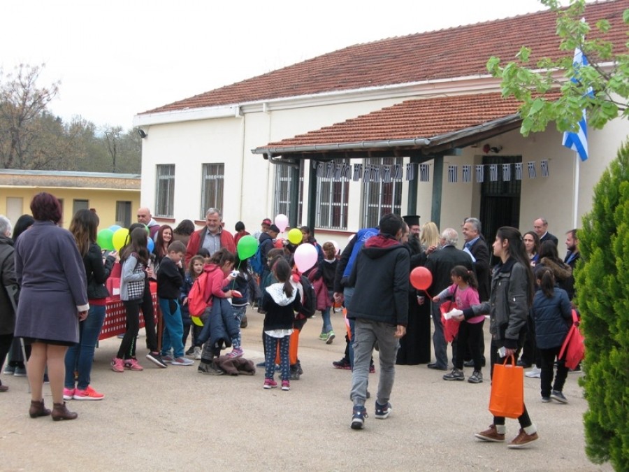 Το καλωσόρισμα έγινε από την είσοδο ήδη του σχολείου με δωράκια που μοίρασαν στα παιδιά εκπρόσωποι εκπαιδευτικών του ΠΑΜΕ και της Πανελλήνιας Ομοσπονδίας Γυναικών, καθώς και κεράσματα που ετοίμασε το σχολείο. Ακολούθησαν σύντομοι χαιρετισμοί από τον διευθυντή Κώστα Κωνσταντινίδη, τον σχολικό σύμβουλο κ. Παπαγεωργίου, τον αντιδήμαρχο παιδείας Γιώργο Σοφιανίδη και τον προϊστάμενο Πρωτοβάθμιας Εκπ/σης Διονύση Διαμαντόπουλο, παρουσία του ιερέα του χωριού π. Ευλόγιου και κάποιων γονέων και μαθητών του δημοτικού σχολείου.