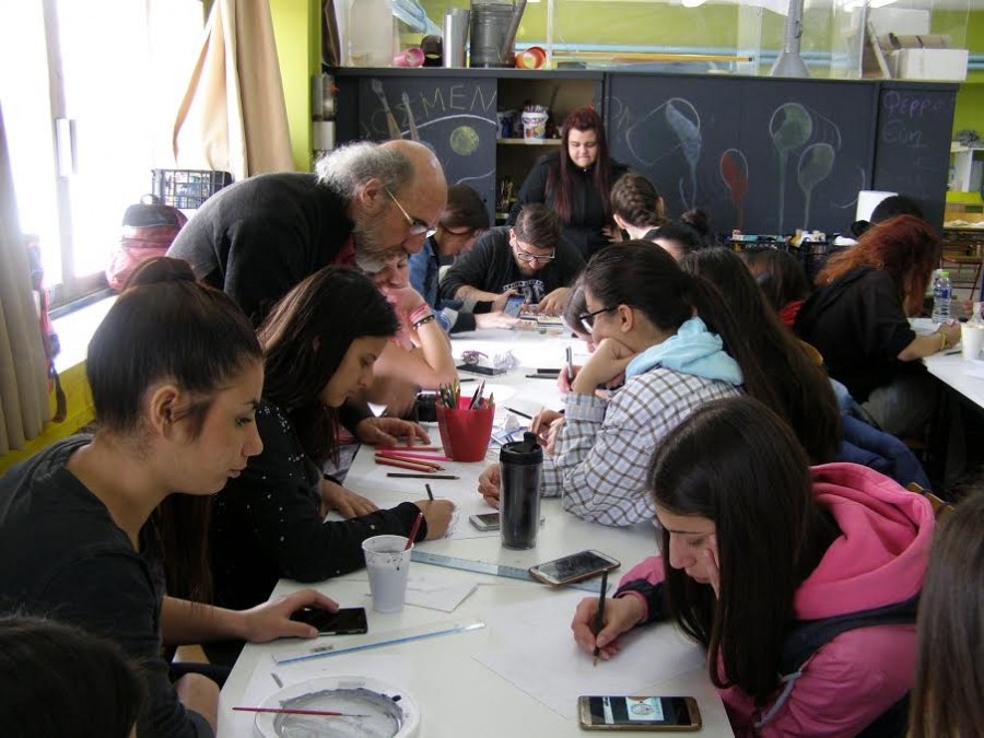 Τον Σερραίο ζωγράφο και εικαστικό Βασίλη Βαφειάδη φιλοξένησε 30 και 31 Μαρτίου το 1ο ΕΠΑΛ Βέροιας με την υποστήριξη του Εργαστηριακού Κέντρου Βέροιας. Η αφορμή; Το πρόγραμμα που τρέχει στο 1ο ΕΠΑΛ «Η τέχνη στα άκρα» και η δημιουργία θεατρικής αφίσας για την παράσταση που ετοιμάζει το σχολείο.