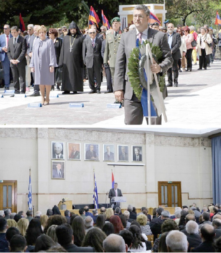 «Είμαστε σήμερα υπερήφανοι, που η Ελλάδα υπήρξε μία από εκείνες τις χώρες, που παραχώρησαν άσυλο στους διωκόμενους Αρμενίους. Την Ελλάδα και την Αρμενία τις συνδέουν ισχυροί, ιστορικοί δεσμοί φιλίας. Και σήμερα, τόσο η ιστορική ελληνική κοινότητα της Αρμενίας, όσο και η ακμάζουσα και δραστήρια αρμενική κοινότητα της Ελλάδος, αποτελούν συνεκτικούς κρίκους στις επαφές ανάμεσα στους δυο λαούς μας. Η παρουσία των Αρμενίων στην Ελλάδα ξεπερνάει τον ένα αιώνα. Η κοινότητα των Αρμενίων, υπήρξε και εξακολουθεί να αποτελεί ένα δραστήριο και δυναμικό στοιχείο, που με αποφασιστικότητα και απόλυτη ευσυνειδησία, λειτουργεί ως αναπόσπαστο κομμάτι της ελληνικής κοινωνίας», υπογράμμισε ο Περιφερειάρχης.