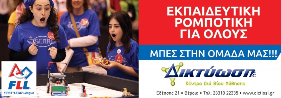 Το Κέντρο Δια Βίου Μάθησης ΔΙΚΤΥΩΣΗ καινοτομώντας στο χώρο της πληροφορικής και των νέων τεχνολογιών, ανακοινώνει την έναρξη Εργαστηρίων Εκπαιδευτικής Ρομποτικής για μαθητές Δημοτικού και Γυμνασίου.