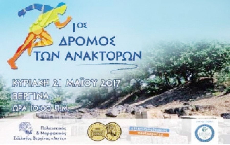 Ο Εκπολιτιστικός και Μορφωτικός Σύλλογος Βεργίνας «Αιγές», σε συνδιοργάνωση με το ΚΑΠΑ του Δήμου Βέροιας και υπό την αιγίδα της ΕΘΝΟΑ διοργανώνουν τον «1ο Δρόμο των Ανακτόρων», 12 χιλιομέτρων.