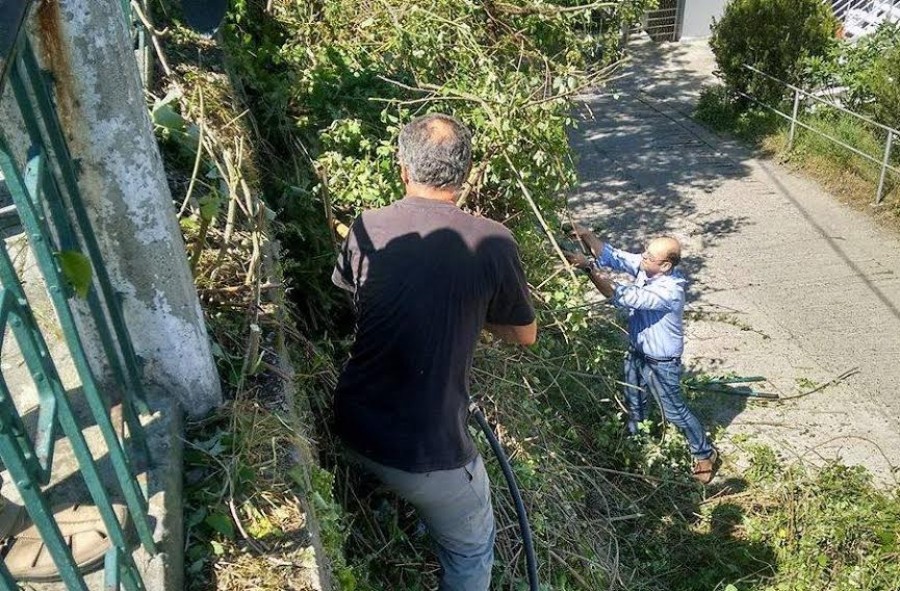 Κοσάδες, ψαλίδια, τσάπες και άλλα εργαλεία πήραν φωτιά την Κυριακή στην Αγία Παρασκευή στη Νάουσα, με μικρούς και μεγάλους να τα δίνουν όλα και να παραδίδουν τελικά μια αστραφτερή πλατεία, έτοιμη μάλιστα να υποδεχθεί εκδηλώσεις, όπως ειπώθηκε από πολλούς! Στη φωτογραφία μας δύο αντιδήμαρχοι, ένας νυν, ο Σταύρος Βαλσαμίδης, κι ένας πρώην, ο Χρήστος Παππάς, που κάτοικος της γειτονιάς όχι μόνο δεν έλειπε, αλλά ανέλαβε και τα δύσκολα στο πρανές της πλατείας!
