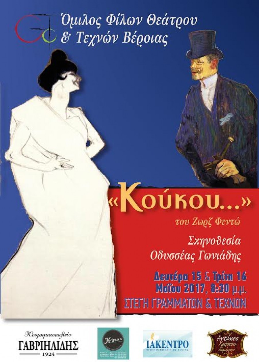 Την ανατρεπτική κωμωδία του Ζωρζ Φεντώ “Κούκου…” ανεβάζει τη Δευτέρα 15 & την Τρίτη 16 Μαΐου στις 8:30μμ στην Αντωνιάδειο Στέγη Γραμμάτων ο Όμιλος Φίλων Θεάτρου και Τεχνών Βέροιας, σε σκηνοθεσία Οδυσσέα Γωνιάδη.