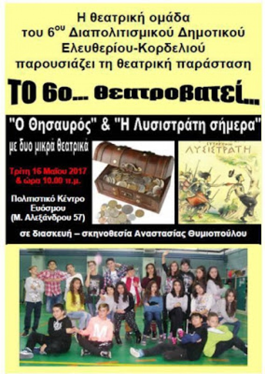 Για δεύτερη φορά ένα διήγημα του Πρόεδρου της Δημ. Κοινότητας Μελίκης και συγγραφέα, Αλέξανδρου Ακριτίδη, μετατρέπεται σε θεατρικό έργο, με την υπέροχη διασκευή και σκηνοθεσία της Αναστασίας Θυμιοπούλου. «Ο θησαυρός», από τη Συλλογή Διηγημάτων «Της ζήσης χαρμολύπες» (Εκδόσεις Ινφογνώμων, 2016) θα συμμετάσχει στους θεατρικούς αγώνες «Ακτίς Ονείρου 2017», με τη θεατρική ομάδα του 6ου Διαπολιτ ισμικού Δημοτικού Ελ-Κορδελιού. Πριν από δυο χρόνια, το ίδιο σχολείο και η ίδια σκηνοθέτης, είχαν ανεβάσει το διήγημα «Το ματωμένο βουνό» του Αλέξανδρου Ακριτίδη, κατακτώντας επάξια το βραβείο καλύτερης ερμηνείας.