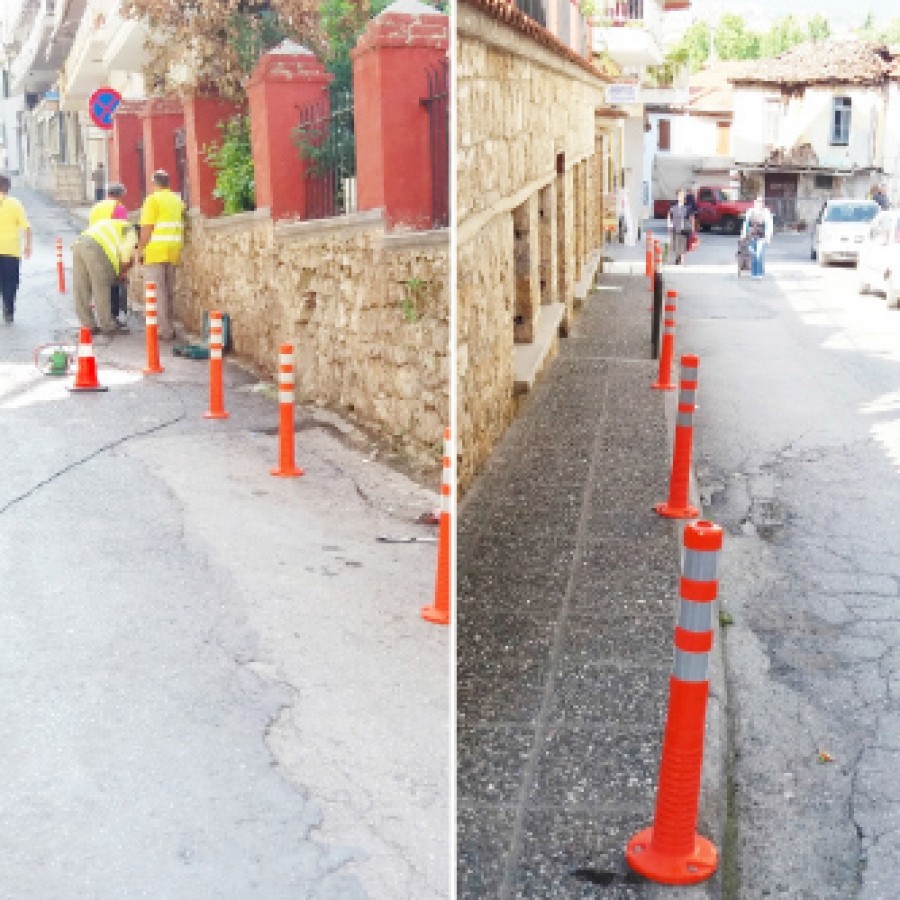 Πλαστικά κολωνάκια τοποθέτησε χθες το συνεργείο του Δήμου Βέροιας, επί της οδού Αγ. Γεωργίου μπροστά στην εκκλησία.