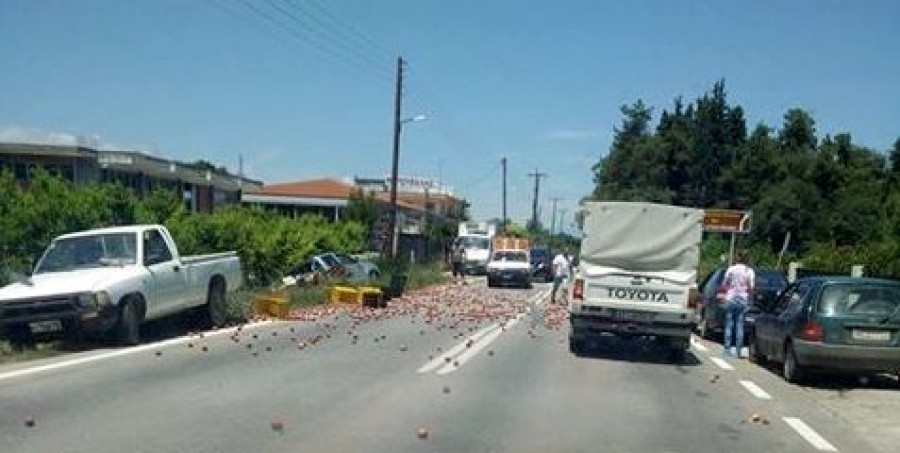 Ένα από τα ατυχήματα της περιόδου, σε αγροτικό δρόμο στον Κοπανό, το απόγευμα της Κυριακής. Ευτυχώς με μόνο υλικές ζημιές, αν φυσικά σ’ αυτές συμπεριλάβουμε και την πρώτη ύλη που λέγεται ροδάκινο, που λόγω της σύγκρουσης βρέθηκε στον δρόμο! Θα μου πείτε, με τις τιμές που ξεκίνησαν τα ροδάκινα φέτος… ίσως να είναι και μικρό το κακό, αλλά δεν πάει έτσι. Τα συγκεκριμένα ροδάκινα πάντως μετά τη σύγκρουση «ούτε για φαγί δεν είναι», που λένε κι οι αγρότες!