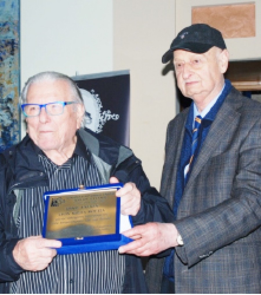 (Η φωτογραφία από την τιμητική πλακέτα στον Κώστα Βουτσά κατά την κοπή πίτας της Κινηματογραφικής Ένωσης Βορ. Ελλάδος της οποίας πρόεδρος ήταν ο Γ. Βλαχογιάννης.)
