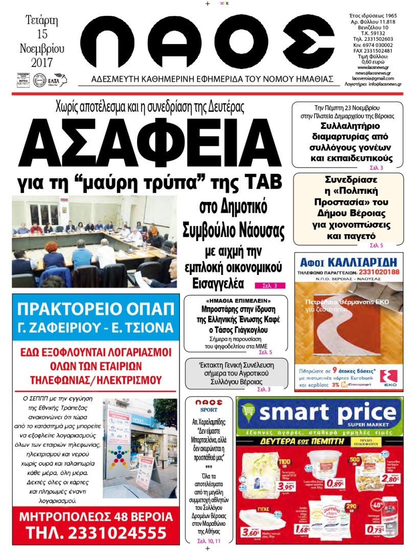 ΑΣΑΦΕΙΑ για τη “μαύρη τρύπα” της ΤΑΒ στο Δημοτικό Συμβούλιο Νάουσας με αιχμή την εμπλοκή οικονομικού Εισαγγελέα