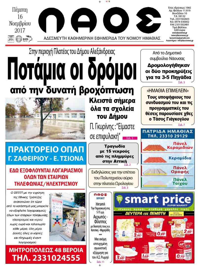 Πρωτοσέλιδο 16 Νοε. 2017