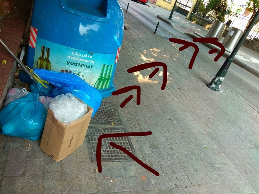 Ενδεικτικό το σχόλιο του φίλου Άγγελου Χατζηστυλλή στο προσωπικό του ιστολόγιο, για τη νοοτροπία κάποιων. “Η πόλη κάτι κάνει, οι πολίτες δεν το βλέπω…” σημειώνει με νόημα ο Άγγελος στη φωτογραφία. Με τα σκουπίδια δίπλα στον κάδο των γυάλινων και τους υπόγειους κάδους της Βενιζέλου στη Νάουσα μόλις πέντε μέτρα δίπλα!