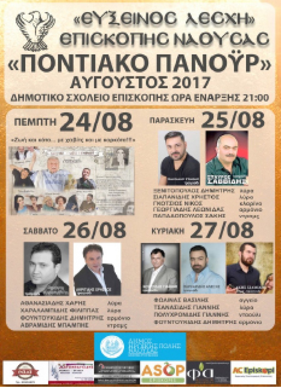 Η Εύξεινος Λέσχη Επισκοπής διοργανώνει τετραήμερες εκδηλώσεις στις 24-25-26-27 Αυγούστου 2017 στο χώρο του δημοτικού σχολείου Επισκοπής.