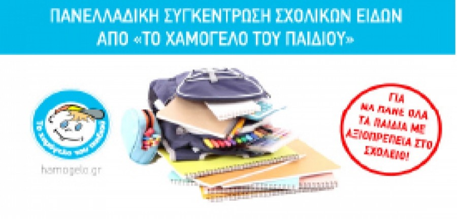«Το Χαμόγελο του Παιδιού» για μια ακόμα χρονιά, μας καλεί όλους στην πανελλαδική εκστρατεία συγκέντρωσης σχολικών ειδών που διοργανώνει για να καλυφτούν οι ανάγκες κάθε παιδιού και να ξεκινήσει η σχολική χρονιά με αξιοπρέπεια και χαμόγελα!