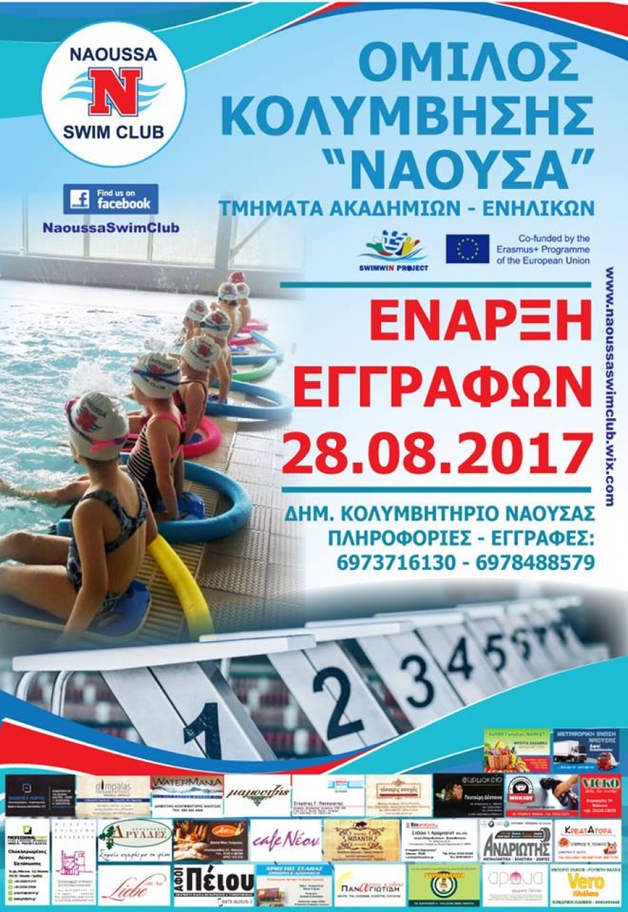Ξεκίνησαν οι εγγραφές στον Όμιλο Κολύμβησης ΄Νάουσα΄. Οι λεπτομέρειες στην αφίσα.