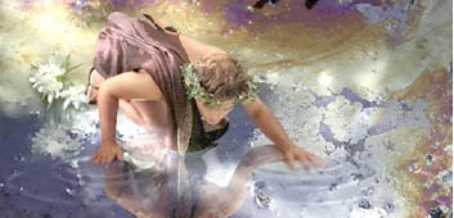 Τότε η Ηχώ, ανταπάντησε καταδικασμένη να επαναλαμβάνει συνεχώς μα μονάχα την τελευταία λέξη του συνομιλητή της: «Εδώ, εδώ, εδώ». Και ο δύστυχος Νάρκισσος, έχοντας το μυαλό του ναρκωθεί από τον έρωτα προς το είδωλο του και τη στασιμότητα, νόμισε πως ήταν το είδωλο που απάντησε πίσω από τον υδάτινο καθρέπτη και βούτηξε για να σμίξει με τον έρωτά του, μα με το Θάνατο, αγκαλιάστηκε στα υδάτινα βάθη.