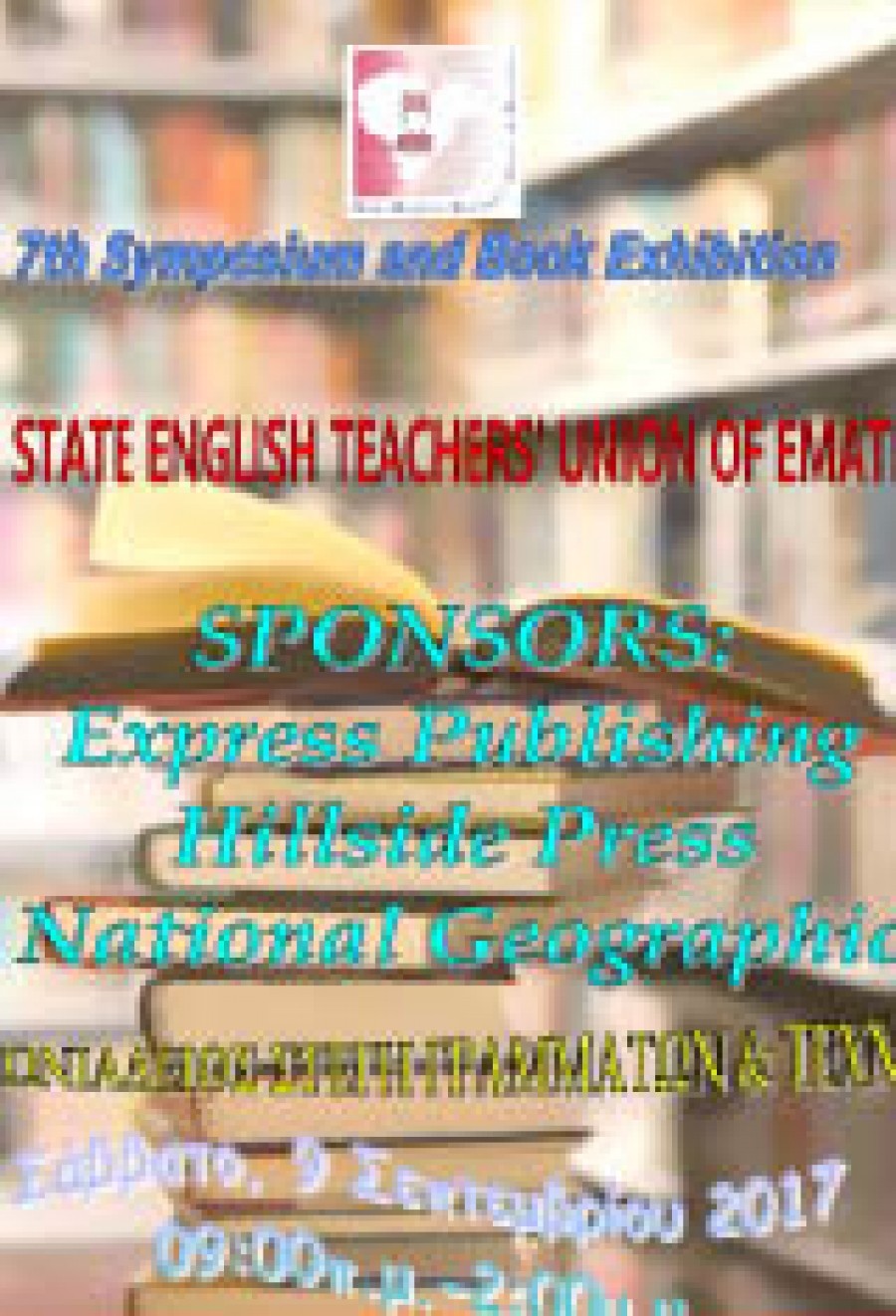 Η Ένωση Καθηγητών Αγγλικής Δημόσιας Εκπαίδευσης Ημαθίας (ΕΚΑΔΕΗ) προσκαλεί τους καθηγητές Αγγλικών της δημόσιας αλλά και της ιδιωτικής εκπαίδευσης στο 7o κατά σειρά εκπαιδευτικό της συμπόσιο και παράλληλη έκθεση βιβλίων, στην Αντωνιάδειο Στέγη Γραμμάτων & Τεχνών, Αντωνιάδη 19, στην Βέροια, το Σάββατο 9 Σεπτεμβρίου 2017, με την ευγενική χορηγία των α) Express Publishing β) Hillside Press και γ) National Geographic.