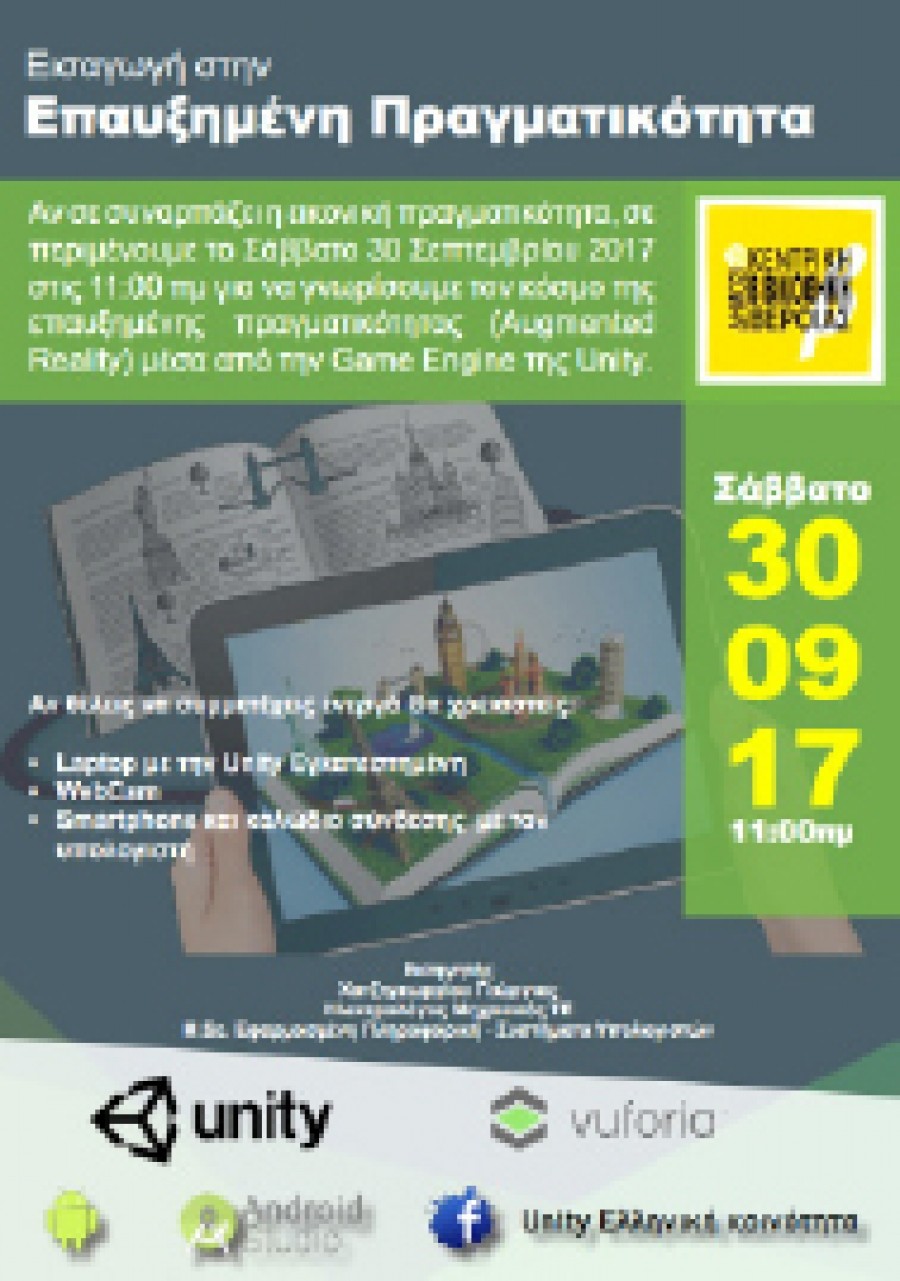 Η Δημόσια Κεντρική Βιβλιοθήκη της Βέροιας διοργανώνει εργαστήριο εισαγωγής στην Επαυξημένη Πραγματικότητα (AugmentedReality) στο «Εργαστήριο» (MakerSpace) του 1ου ορόφου.