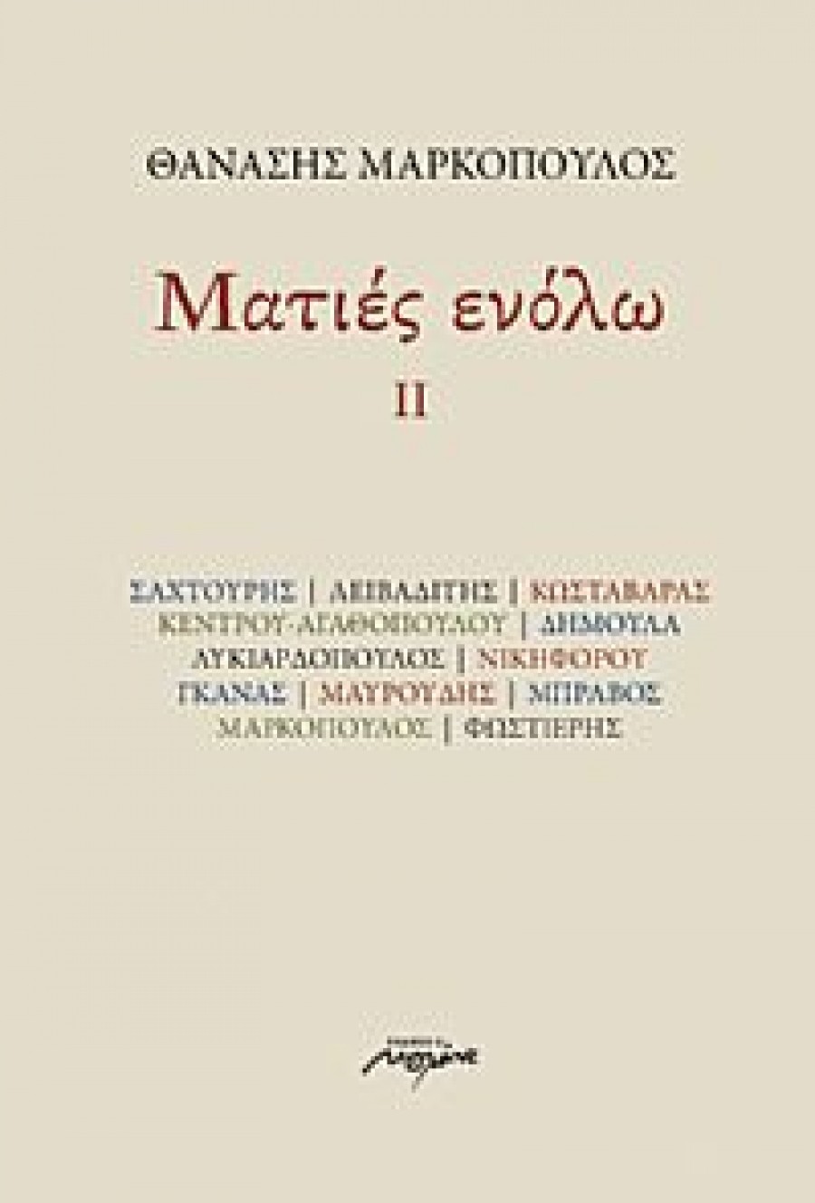 Κατ’ αρχάς τον ευχαριστώ, διότι κάθε φορά που κυκλοφορεί ένα βιβλίο του, βλέπω με χαρά ένα φάκελο με το όνομά μου, στην εφημερίδα. Είναι ο Θανάσης Μαρκόπουλος που εδώ και λίγες ημέρες, έχει στα χέρια του και στα χέρια των φίλων και αναγνωστών του, το νέο του βιβλίο «Ματιές ενόλω ΙΙ», από τις εκδόσεις Μελάνι.
