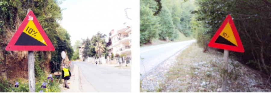Πινακίδες κατωφέρειας (!) σε ανηφορικό δρόμο…