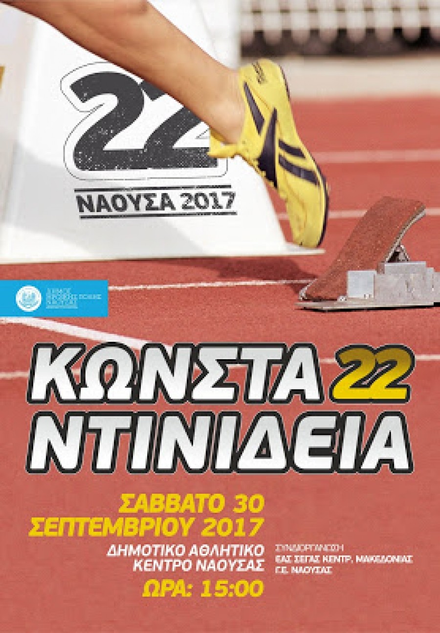 Τo Σάββατο 30 Σεπτεμβρίου και ώρα 15:00 θα διεξαχθούν στο Δημοτικό Στάδιο Νάουσας για εικοστή χρονιά οι επιτυχημένοι αγώνες στίβου «22ά Κωνσταντινίδεια».