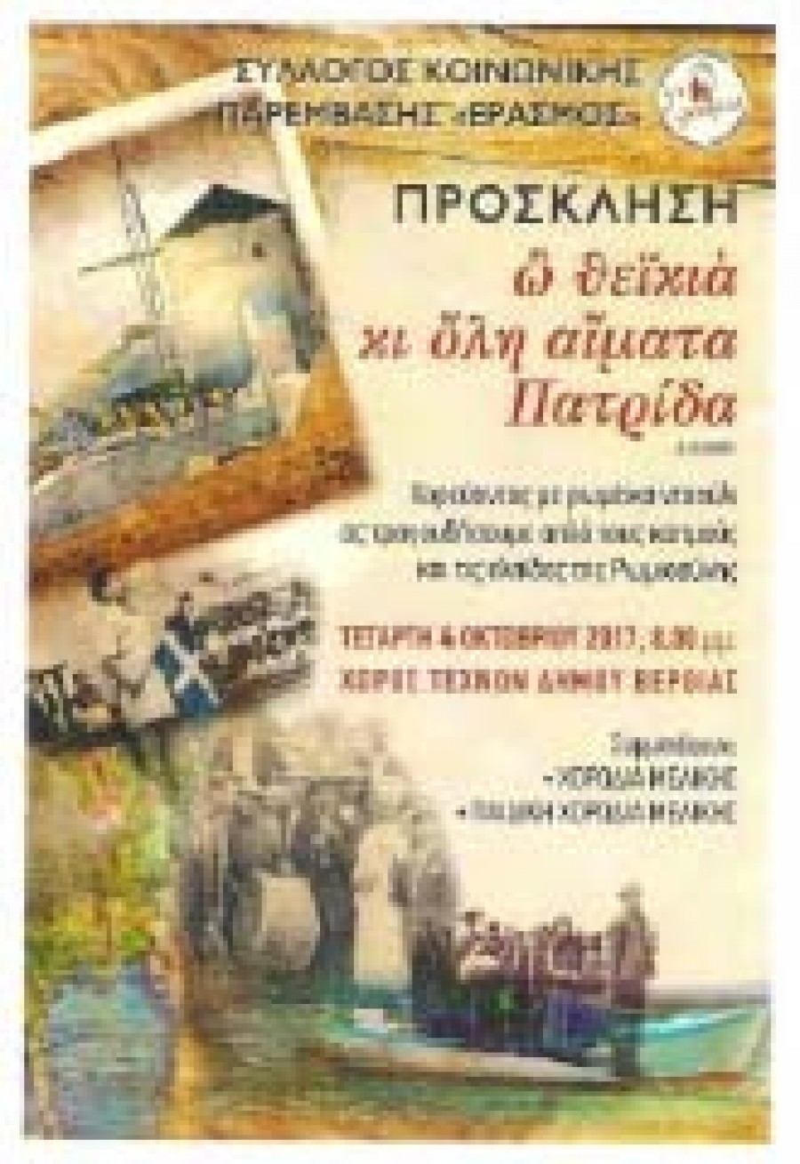 «ὢ θεϊκιὰ κι ὅληαἵματα Πατρίδα» Εκδήλωση-μουσικό δρώμενο από τον «Έρασμο» για έναν κόσμο με Αγάπη και Χαμόγελο