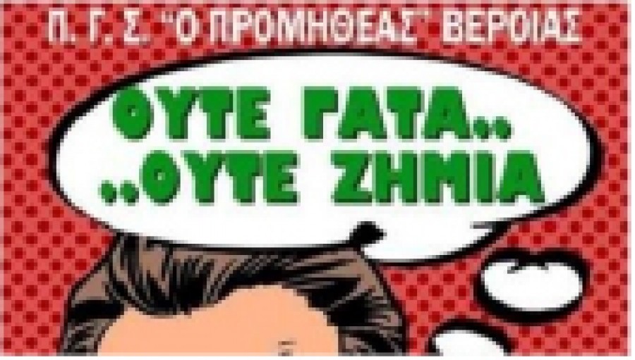 Έφτασε η ώρα της επίσημης πρεμιέρας του έργου μας στην πόλη της Βέροιας… Έπειτα από αρκετές παραστάσεις που δοθήκαν σε διαφορετικές περιοχές (μακρινές και μη…), η ξεκαρδιστική θεατρική παράσταση ¨ΟΥΤΕ ΓΑΤΑ ΟΥΤΕ ΖΗΜΙΑ¨, των Σακελαρίου – Γιαννακόπουλου και σε σκηνοθεσία Διονύση Καρολίδη, ανοίγει την αυλαία της για το πολυαγαπημένο κοινό της Βέροιας!!! Σας περιμένουμε την Τετάρτη 18 Οκτωβρίου 2017 και ώρες 6μμ και 9μμ στο κινηματοθέατρο ΣΤΑΡ. Διπλή παράσταση μήπως και προλάβετε όλοι!!! Εξασφαλίστε νωρίτερα τις θέσεις σας στα τηλέφωνα 23310 28663, 6932330078. Οικονομική ενίσχυση 5 ευρώ. Σας περιμένουμε!!!