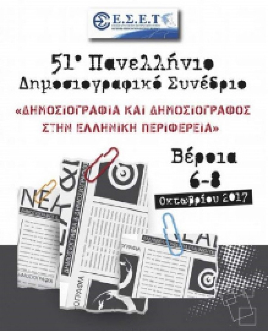 Τα παραπάνω είναι κάποια από τα ερωτήματα και θέματα εισηγήσεων που θα προσπαθήσουν να απαντήσουν εισηγητές και σύνεδροι στο 51ο Πανελλήνιο Δημοσιογραφικό Συνέδριο με θέμα «Δημοσιογραφία και Δημοσιογράφος στην Ελληνική Περιφέρεια» το οποίο διοργανώνει η Ένωση Συντακτών Επαρχιακού Τύπου στην Βέροια 6 – 8 Οκτωβρίου 2017 .