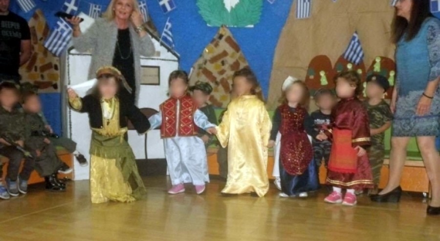 Τη γιορτή άνοιξαν τα νήπια, τα οποία με περισσό καμάρι παρέλασαν ντυμένα φανταράκια και Ελληνίδες κρατώντας ελληνικές σημαίες.