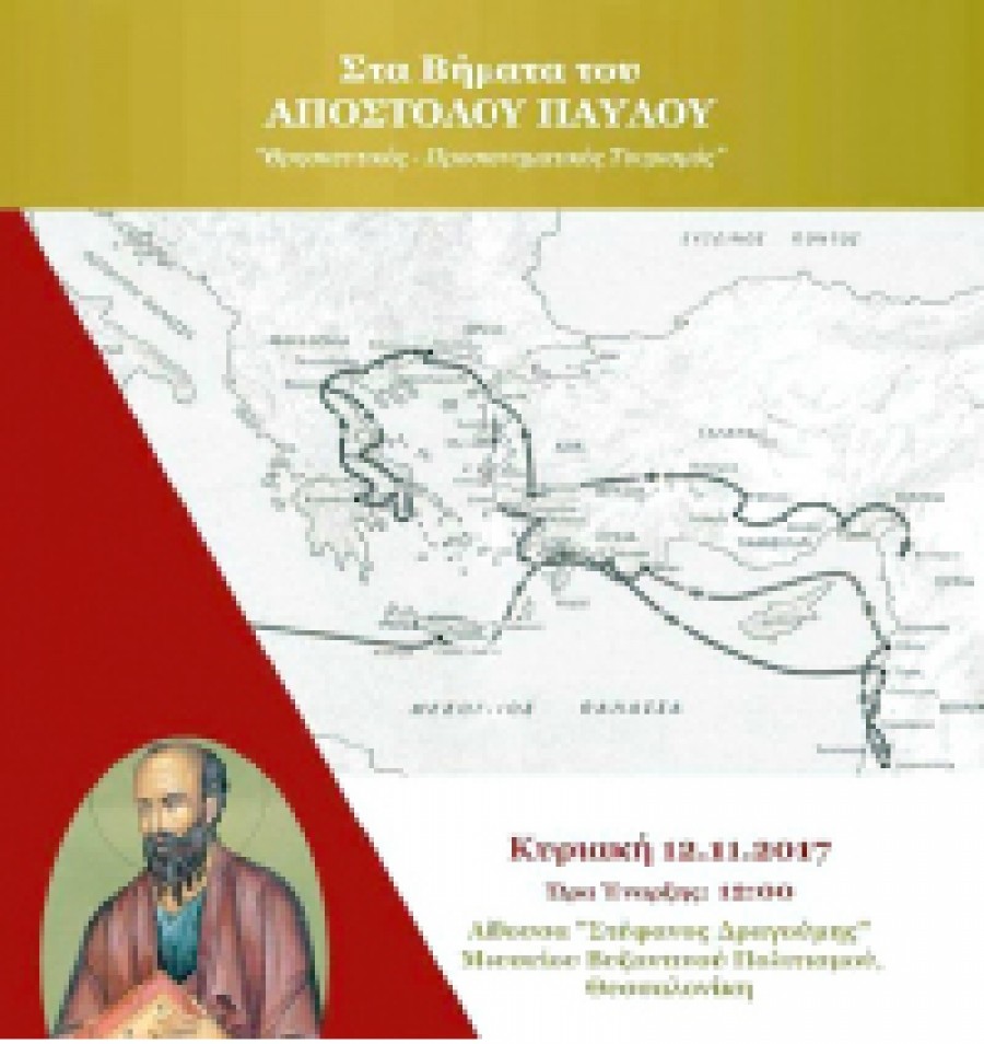 Τις διαδρομές του Αποστόλου Παύλου σε όλη την Ελλάδα παρουσιάζουν για πρώτη φορά έξι Περιφέρειες της Ελλάδας σε μια κοινή εκδήλωση την ερχόμενη Κυριακή στη Θεσσαλονίκη. Με πρωτοβουλία της Περιφέρειας Κ. Μακεδονίας και σε συνεργασία με το Μουσείο Βυζαντινού Πολιτισμού και τον ΕΟΤ, οι Περιφέρειες Ανατολικής Μακεδονίας και Θράκης, Αττικής, Πελοποννήσου, Βορείου Αιγαίου και Κρήτης, θα παρουσιάσουν, η καθεμιά για την περιοχή της, τη διαδρομή και τα σημεία από όπου κήρυξε τη διάδοση του χριστιανισμού ο Απόστολος των Εθνών.