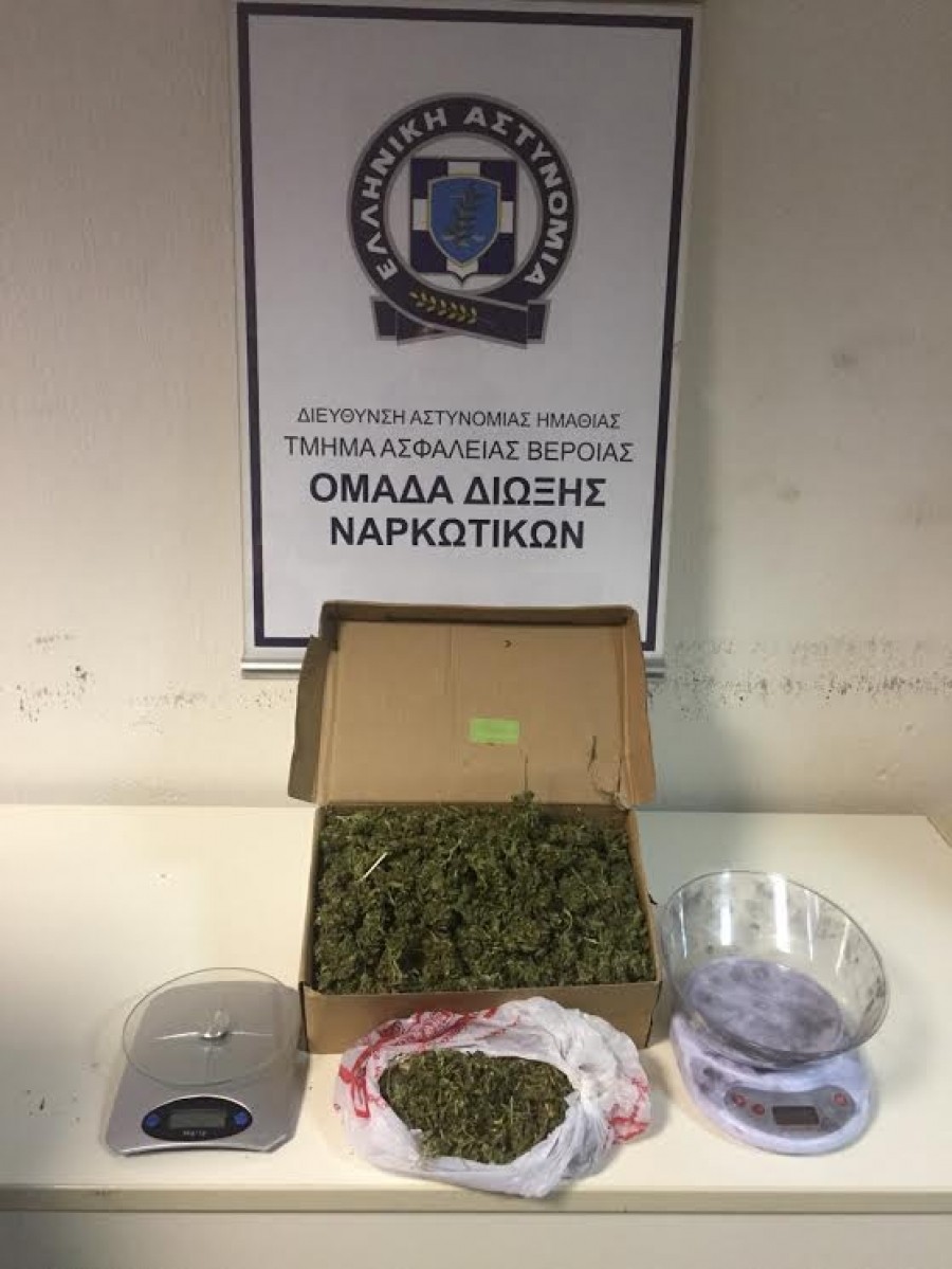 Για διακίνηση και κατοχή κάνναβης συνελήφθησαν το απόγευμα της Δευτέρας σε περιοχή της Βέροιας ένας 23χρονος και ο 49χρονος πατέρας του. Ο 23χρονος εντοπίστηκε να κινείται πεζός μαζί με 18χρονο και αντιλαμβανόμενοι την αστυνομική παρουσία προσπάθησαν να διαφύγουν πετώντας στο έδαφος μία συσκευασία με ποσότητα κάνναβης βάρους 756 γραμμαρίων και μία ηλεκτρονική ζυγαριά ακριβείας. Ωστόσο λίγο αργότερα ακινητοποιήθηκε ο 23χρονος και συνελήφθη, ενώ ο 18χρονος αναζητείται να συλληφθεί εντός των ορίων του αυτοφώρου.
