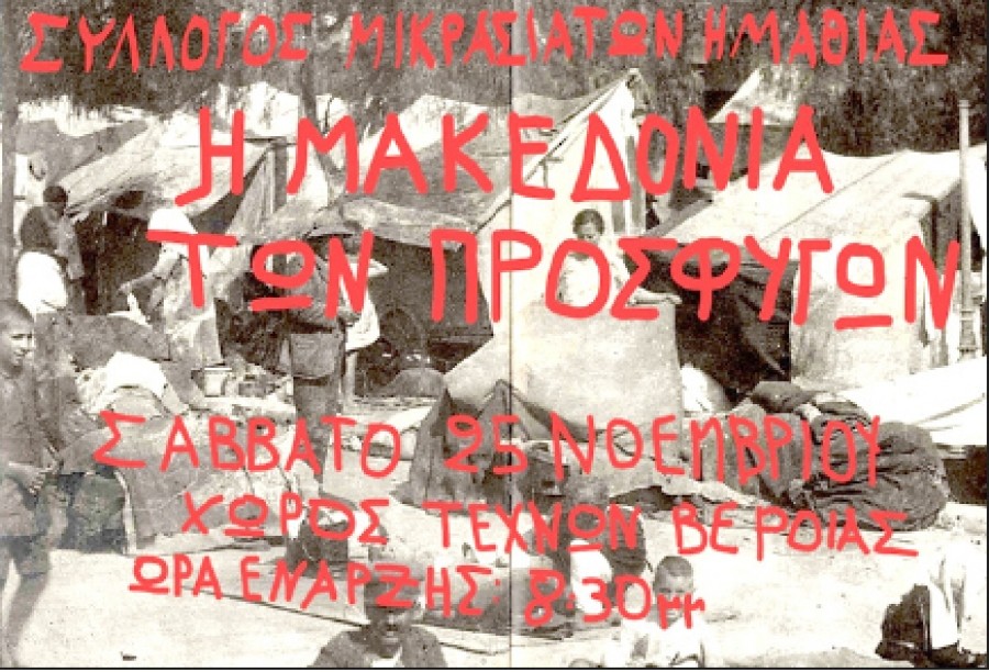Ο Σύλλογος Μικρασιατών Ημαθίας , το Σάββατο 25 Νοεμβρίου παρουσιάζει τη θεατρικομουσικοχορευτική παράσταση «Η ΜΑΚΕΔΟΝΙΑ ΤΩΝ ΠΡΟΣΦΥΓΩΝ».