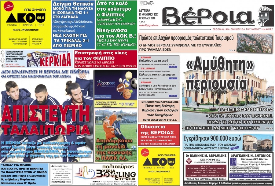 Κυκλοφόρησαν σήμερα οι εφημερίδες ΒΕΡΟΙΑ και ΚΕΡΚΙΔΑ